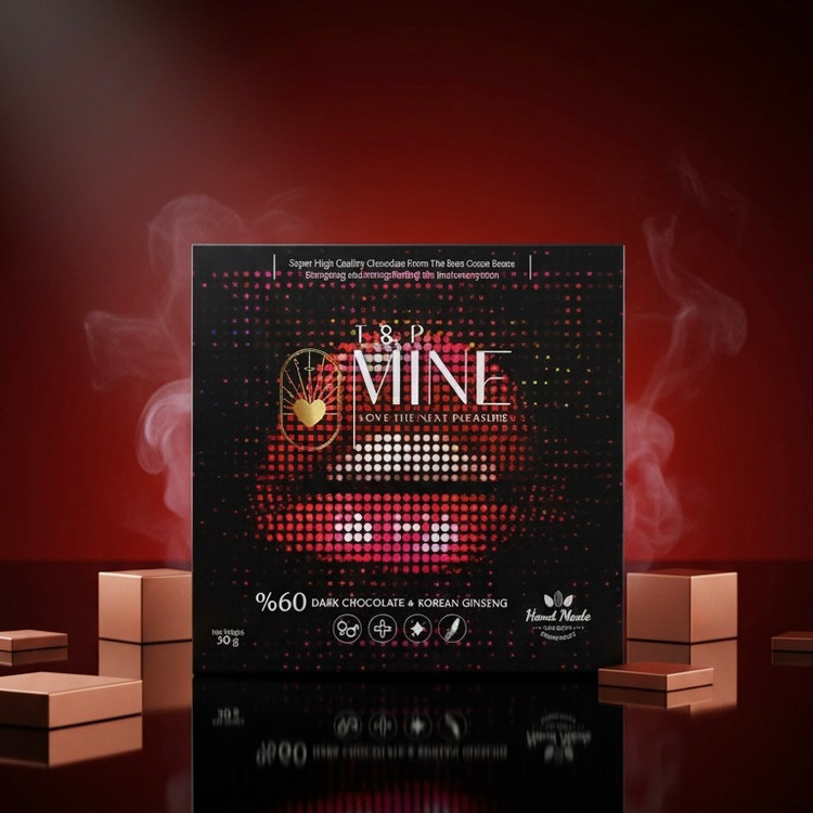 شکلات جنسینگ ماین، شکلاتی دستساز، تولید شده از شکلات ۶۰٪ تلخ بلژیکی، کره کاکائو و ۲۰۰۰ میلی گرم عصاره خالص جنسینگ قرمز کره ای.